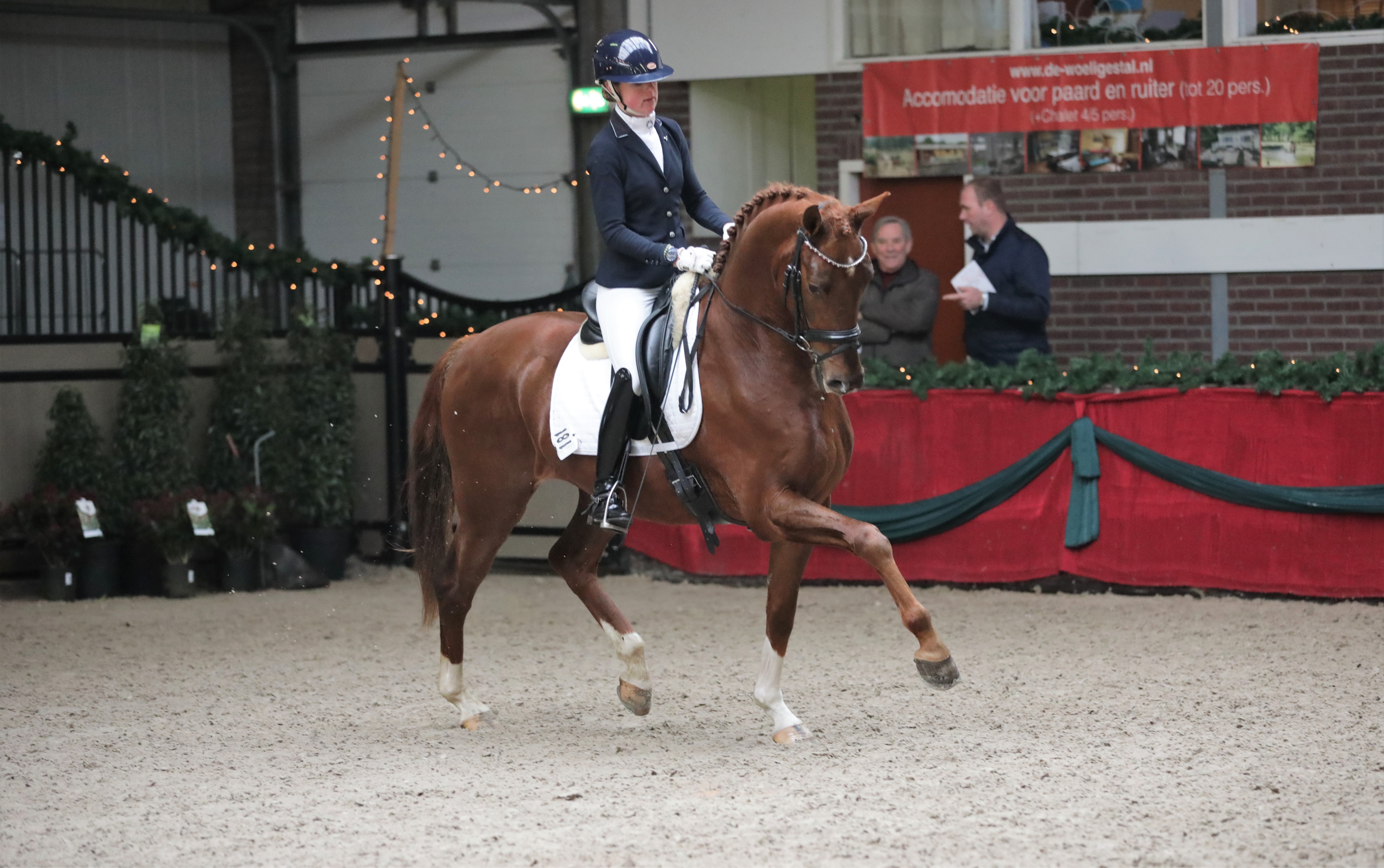 Maandag 23 december vond de finale van de VSN Trofee in Kootwijkerbroek plaats. Vigo (v. Vitalis x Sir Donnerhall) liet zich in de voorselectie al goed zien en behaalde hierdoor een ticket voor de finale van de VSN Trofee. Vigo mocht als laatste de baan in maar ondanks wat spanning liet hij zich al heel goed zien! Vigo heeft al erg veel kracht in de draf en de galop en behaalde voor deze onderdelen dan ook een 9! Dit bracht hem naar een 2e plaats in het klassement met 42,5 punten. Hierdoor mochten we overrijden in de finale! Ook de testruiter was erg enthousiast over Vigo, hij voelde erg fijn aan en had een onbegrensd schakelvermogen. Daarvoor kreeg Vigo een 10 voor het overrijden!! Hiermee eindige Vigo op een 2e plaats met 52,5 punten in de finale bij de VSN Trofee!